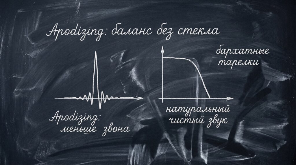 Apodizing — не про фазу, а про «подрезание» звона: за счёт специальных окон уменьшают пред- и постзвон, жертвуя чуть более пологим спадом и не таким экстремальным подавлением.