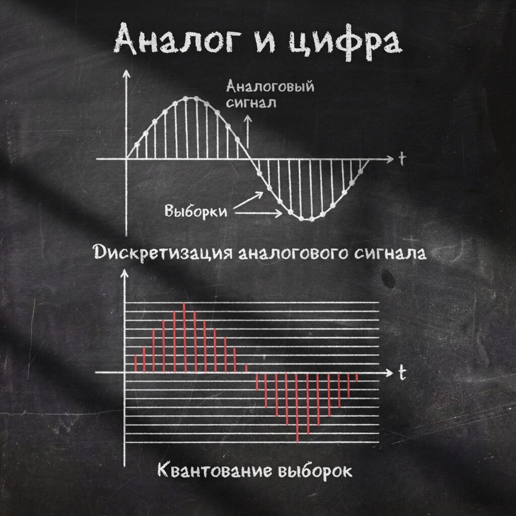 По сути, вся магия ЦАП — это математическое восстановление непрерывной волны по её дискретным отсчётам (теорема Котельникова-Шеннона в действии).