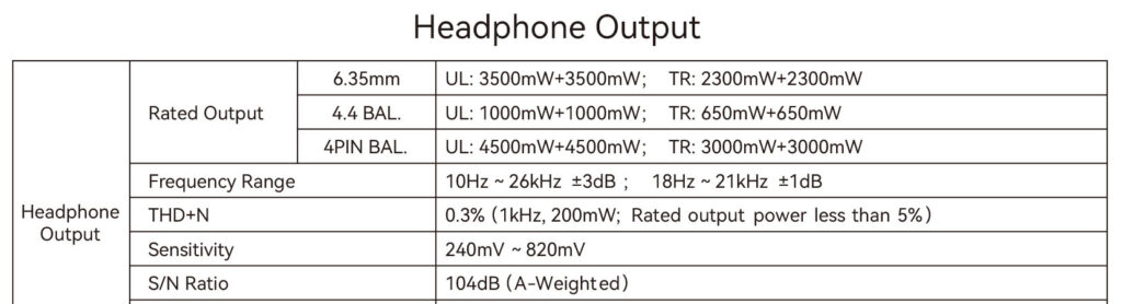 Судя по посту представителя Cayin на форуме Head-Fi, отводы со вторичной обмотки ТВЗ сделаны на реальные нагрузки 32, 100 и 300 Ом для симметричных выходов и 16, 50 и 150 Ом для несимметричного, однако в инструкции к усилителю заявляется поддержка наушников с импедансами 8—64, 65—250 и 251—600 Ом соответственно. Каким образом удалось реализовать столь широкие диапазоны без слышимой потери качества звука, остается загадкой.